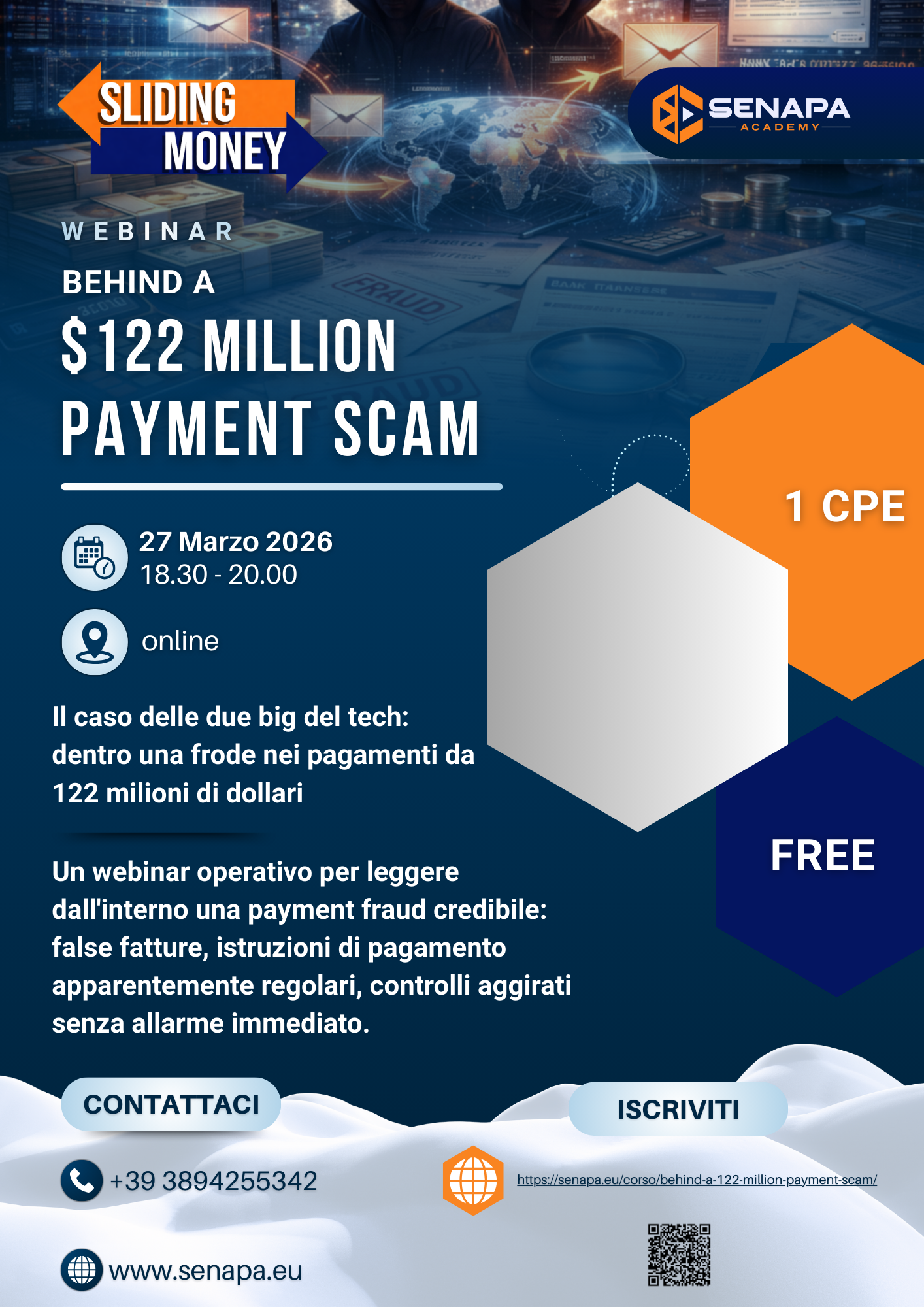 Il webinar è pensato per professionisti e studenti che operano, o desiderano operare, in audit, compliance, risk management, finance e controllo interno, così come per chi vuole sviluppare una maggiore capacità di lettura critica dei processi autorizzativi e di pagamento.